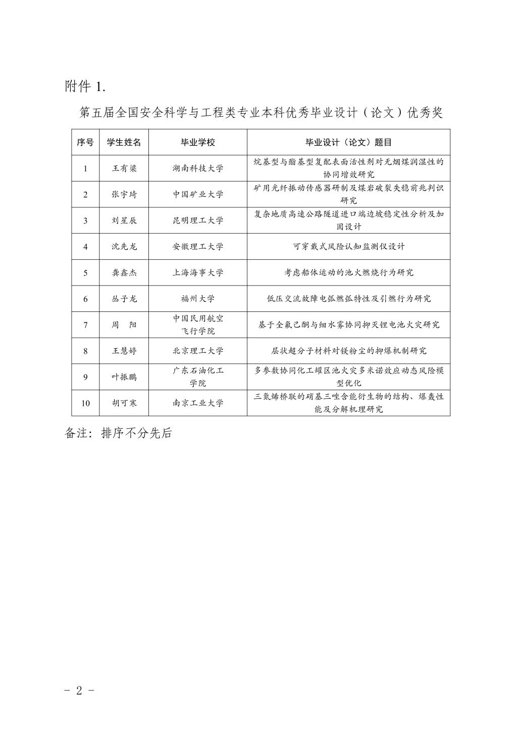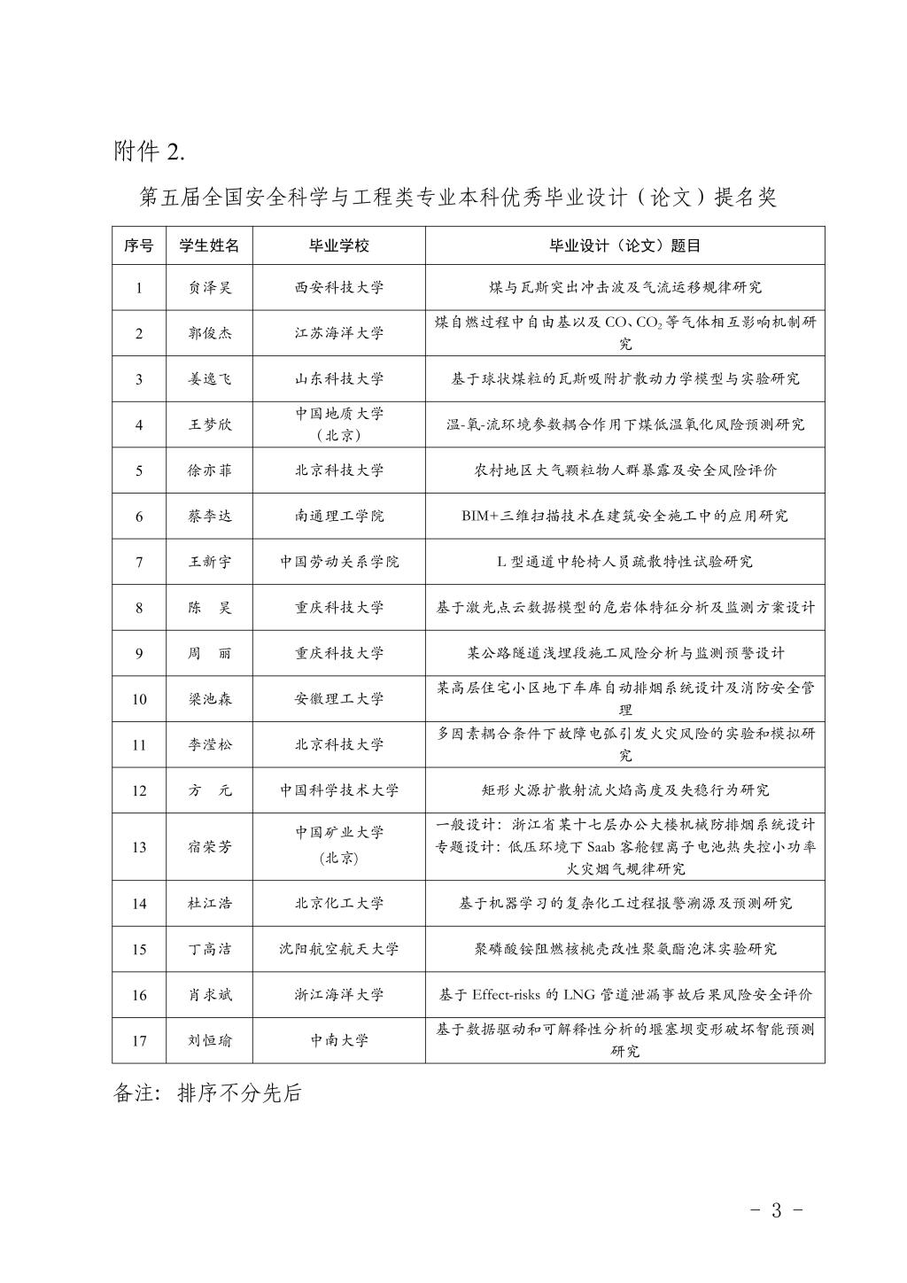 附件:第五届全国安全科学与工程类专业本科优秀毕业设计(论文)获奖名单(含提名奖)