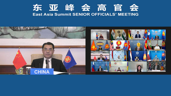 According to the Chinese Foreign Ministry, Assistant Foreign Minister Wu Jianghao attended the ASEAN-China-Japan-ROK Senior Officials' Meeting, the East Asia Summit Senior Officials' Meeting and the ASEAN Regional Forum (ARF) Senior Officials' Meeting held by video respectively from June 8 to 9, 2022. Participants exchanged views on institutional development, post-epidemic recovery and international and regional issues of common interest.
